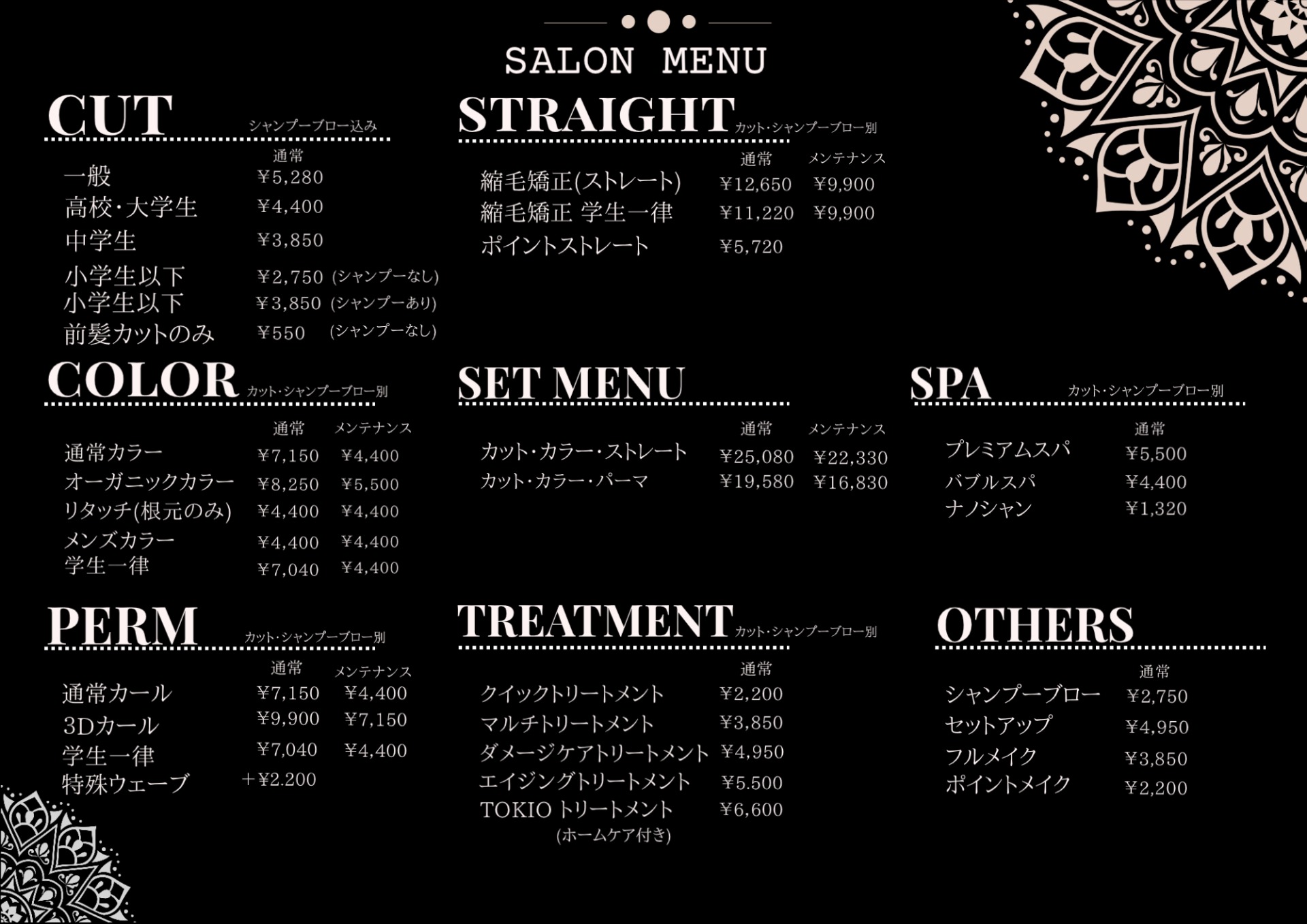 ※カット、カラー、パーマ、ストレート全て同日の施術が可能です